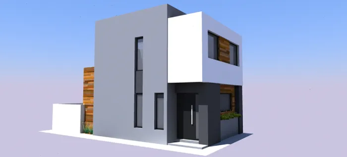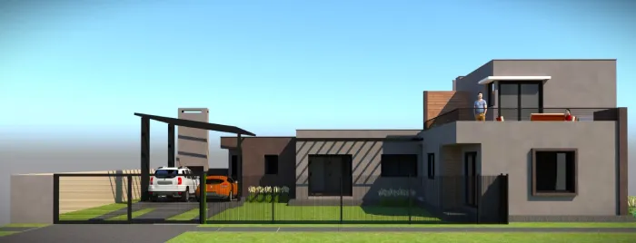 La vivienda se desarrolla con un esquema de plantas de geometría concentrada con cubierta transitable plana para ambos niveles, con importantes voladizos.